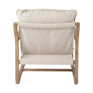 The Brayden Accent Chair features a dark brown finish that extends over the wooden frame, bringing out the natural wood grain and adding a sense of depth and texture to the piece, with the slightest hint of rustic charm. The soft cream fabric blends with the natural tones, adding visual interest and a soft feel.