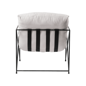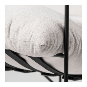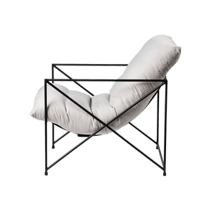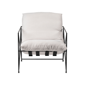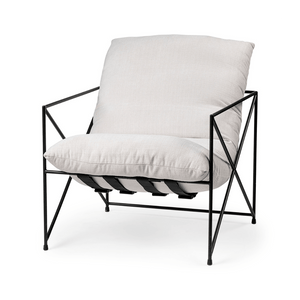 The Leonidas is a stylish armchair designed to offer a seating experience that is second to none. It features a perfectly stuffed, cream fabric wrapped seat rested atop a sleek, four-legged iron base finished in a smooth, matte-black polish that contributes to the visual as well as the comfort factor of this chair.