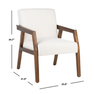 The timeless charm of this Olyvar Armchair makes it a must-have for today’s classic-contemporary interiors. Boasting a finely sculpted brown wooden frame and plush white linen cushions, Olyvar is ideal for the simple sophisticate.