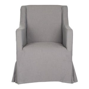 From shabby chic to sophistication, the neatly tailored Sandra slipcover chair is colored in soothing arctic grey fabric and detailed with front and back kick pleats. Gently sloping arms and invisible birch wood legs ensure seating comfort. Sandra is ideal for gracing transitional and traditional interiors.