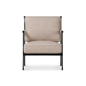 The Vecchia accent chair draws its inspiration from the revered ambiance of Italy's Posta Vecchia hotel, blending timelessness with understated elegance. Crafted with a hammered metal finish, its iron frame showcases a unique lattice detail on the back, crowned with a decorative finial, paying homage to historic Italian craftsmanship. The chair's upholstered seat, complemented by refined piping detail, speaks to comfort and an easy-to-maintain aesthetic grace. Available in two colours.