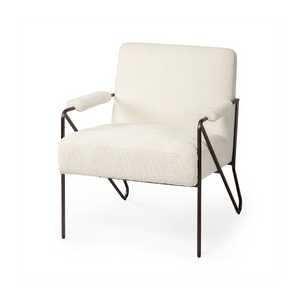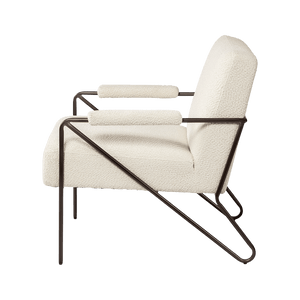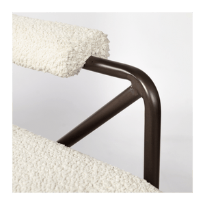 With a perfectly stuffed, upholstered seat and back, the Vicunya combines durability with luxury and comfort. The body is anchored to metal legs finished in a bronze polish that complements the off-white boucle fabric, ensuring the comfort of the highest degree.