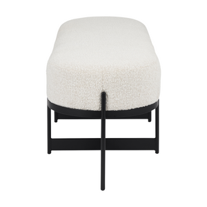 Perfect for the modern home or office, the Amelia bench stylishly combines fabric with metal. Here, the indulgent texture of a creamy bouclé fabric perfectly contrasts the smooth matte black, powder-coated finish of an iron base. Strong yet elegant, this ottoman oozes contemporary appeal.
