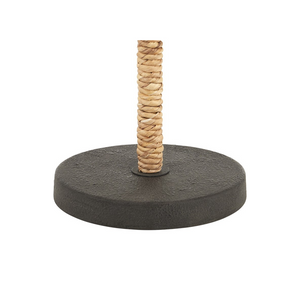 Suzanne Duin, who founded the Houston shop and design studio Maison Maison, conceived the Annabelle Table Lamp. Known for a keen eye in sourcing authentic French antiques and home accessories from around the globe, Suzanne has created a line of woven light fixtures that are handmade by artisans in South Asia. The shade is made of water hyacinth, which brings a textural artistry to the composition. Equally sophisticated is how the thin stem is wrapped in the same natural material. The mole black finish on the woven lamp contrasts the beige tones beautifully.
