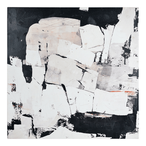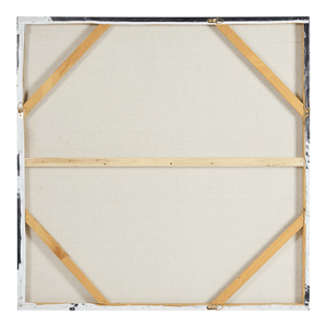 This printed piece of art’s urban influence covers the industrial interior in style and sophistication. With strokes of grey creating a visual reminiscent of a city billboard, it proves color isn’t required to make a statement. A square structure allows for endless design opportunities, including multiple hanging options.