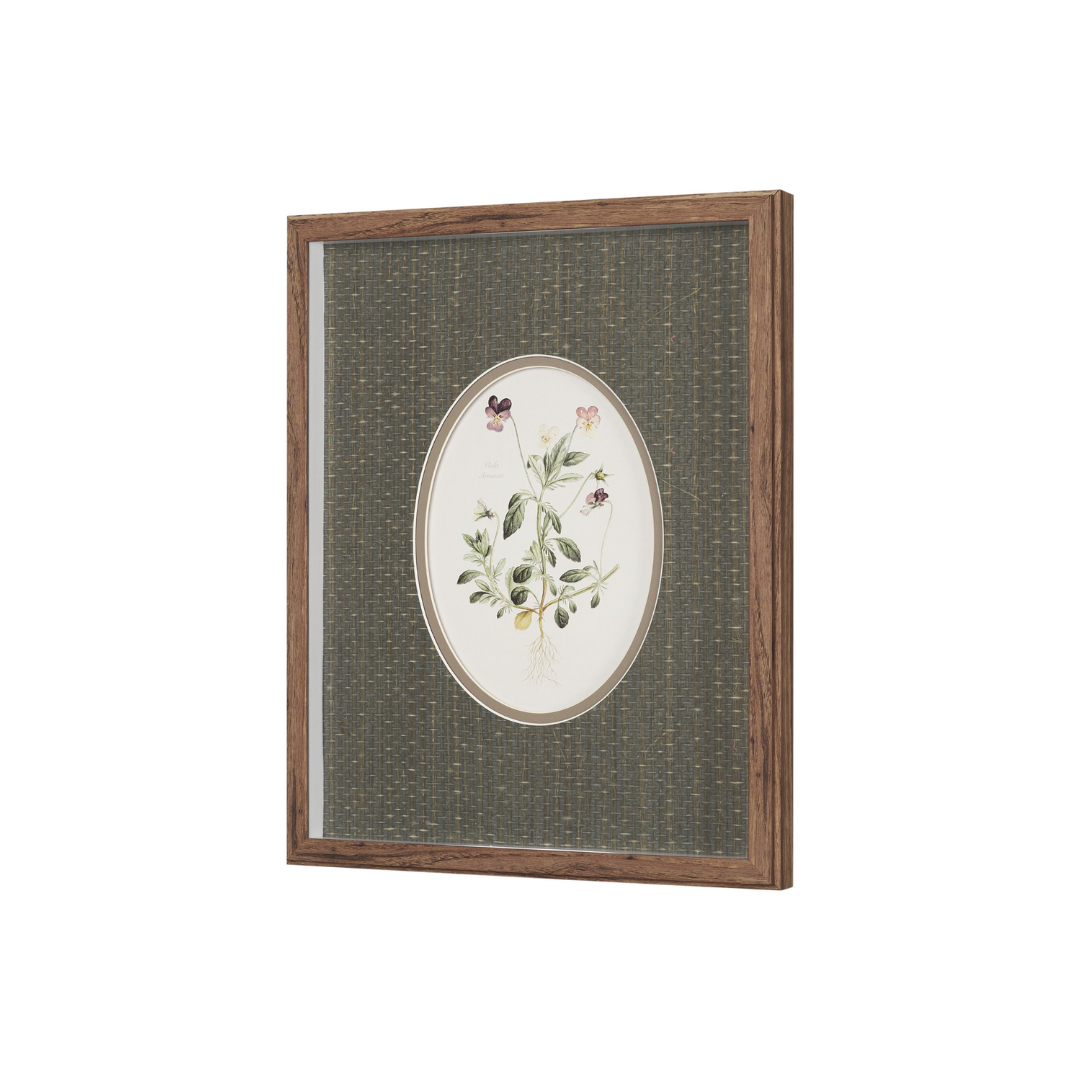 "Viola Arvensis Flowers" by Pierre Joseph Redoute is a stunning botanical art print showcasing the delicate beauty of a viola plant, elegantly rendered in detailed watercolor. Encased in a refined oval mat, the harmonious blend of soft greens and purples enriches any space with a serene, natural charm. Hand-embellished for added depth, this piece offers a textured elegance, inspired by the timeless beauty of nature’s flora.