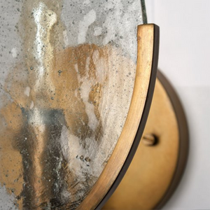 Finished in an antiqued-brass tone, the Rubeus is a stunning metal sconce featuring an elliptical, frosted glass cover that softens the light emitted, making it a great choice when looking for ambient lighting fixtures for any wall.