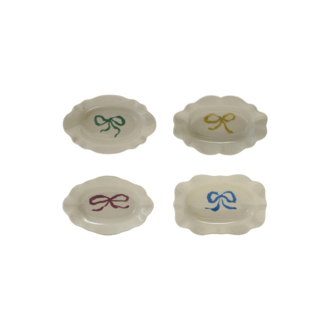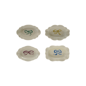 The Scalloped Dish with Bow features delicate curved edges and a charming bow detail for a soft, decorative touch. Its elegant design adds a playful yet refined accent to vanities, shelves, or tabletops.
