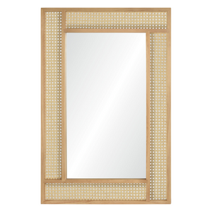 The rattan detail surrounding this mirror not only exudes an effortless sense of style, but it adds a trendy touch to the contemporary interior. Hanging vertically or horizontally, its pine wood frame provides a solid base for the clear mirror to make its pop. An idyllic fit for the entryway or bedroom, it welcomes passersby with its comforting style and a captivating reflection.