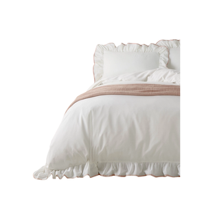 Transform your bedroom into a sanctuary of understated elegance with the Blousey Cotton Ruffle Duvet Cover Set. Crafted from 100% cotton sateen with a luxurious 180 thread count, this duvet set feels exquisitely soft against the skin while offering breathability for year-round comfort. The refined simplicity of its plain design is elevated by a ruffled trim on the duvet and pillowcases, delicately finished with a subtle piped detail in contrasting tones. Perfect for layering with textured throws and cushions, it effortlessly combines a relaxed charm with modern luxury, creating a tranquil yet stylish retreat you'll love coming home to.