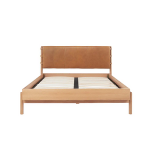 - Materials: UPHOLSTERY: 100% TOP-GRAIN LEATHER, SOLID OAK LEG & HEADBOARD FRAME, OAK VENEER OVER MDF BED FRAME