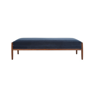 At once understated and sophisticated, this Beatrice Bench is a beautiful study in comfort and class. Beatrice refreshes any décor with bold, navy cotton velvet, perfectly enhanced by an open walnut finished frame. Ideal for gracing a living room or master suite with color driven charisma.