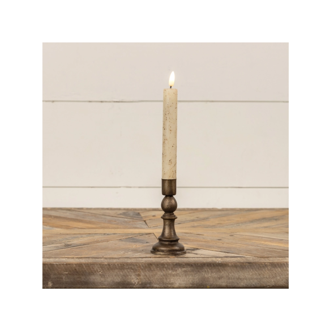A sleek dark grey metal bishop-style taper candlestick, blending classic elegance with a modern industrial touch. Perfect for adding a refined accent to your dining table, mantel, or decorative display.