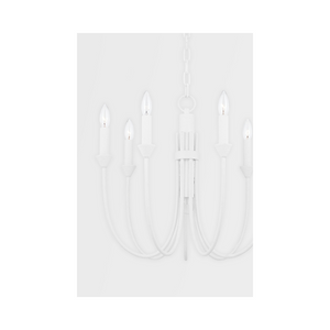 Cate's large swooping arms give the piece a presence while still feeling open and airy at the same time. Whether as a simple single sconce or a breathtaking18-light chandelier, each smooth arm holds a solitary bulb that emits a warm glow. Make a bold statement in Forged Iron or keep things beautifully clean in White Gesso.