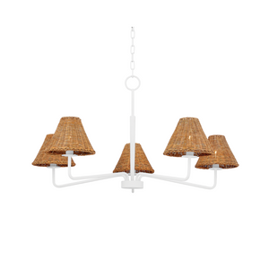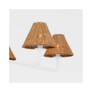 Issa has a natural style that's ahead of the curve. Slender, hooked arms hold a woven rattan shade that lets a soft light filter through. The aged brass or textured white finish is the perfect complement to the natural shade and adds to the fixture's overall earthy feel. There's a place for Issa in every space.