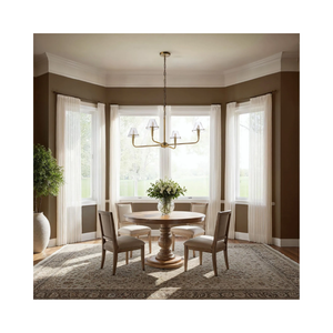Complete the look of any room with this classically styled chandelier. Boasting a dark antique brushed brass-plated finish, this transitional ceiling fixture holds individual glass shades that shed ambient light for a welcoming glow throughout the space.
