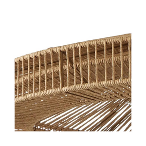 The Maldives Chandelier is made of wrought iron in a mix of satin black and khaki finishes to make this fixture a shoe-in for a black and natural style approach. The rope-like cage that surrounds it, made of Kraft paper twine, is woven to the frame in two layers, the one closest to the light source more concentrated to diffuse the light. The rope chandelier is fitted with five bulbs to make it a luminous fixture.