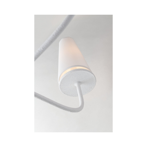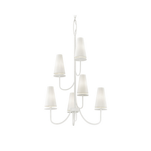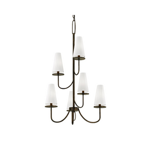 This chandelier has a beautiful mix of contemporary and traditional style, with an iron frame and a long tapered shade.