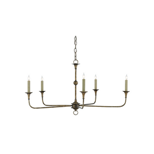 Graceful arms stretch out from the small cog at the bottom creates a fixture with a very fluid profile. The Nottaway also features a Pyrite bronze finish or a gold leaf finish that add a beautiful textural interest.