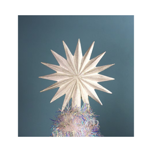 This tree topper features a white, sparkly 15-point design that adds a brilliant, frosty glow to your holiday tree. Its shimmering finish creates a stunning focal point that shines beautifully from every angle.
