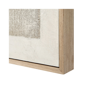 Constructed with a strong PS core and finished with a wood veneer, it boasts a classic, timeless look that will seamlessly complement any interior design aesthetic. 100% hand-painted with exceptional craftsmanship, this unique piece delivers character and depth with its rich texture, beautifully complemented by burlap accents.