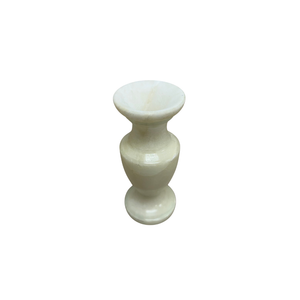 This antique small marble vase features a smooth white finish that highlights its timeless, organic beauty. Its compact size makes it perfect for adding a subtle, elegant accent to shelves, tables, or curated displays.