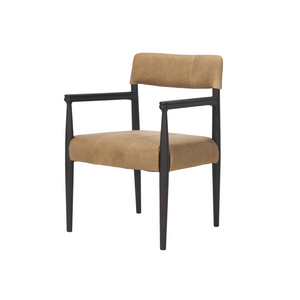 Toni is a luxurious dining chair fashioned from solid nettle wood and adorned in genuine leather or heathered fabric. Its rich finish, complemented by it's versatile texture, exudes timeless elegance. Designed for both style and comfort, this chair is perfectly aligned for a formal yet inviting feel.