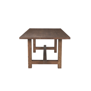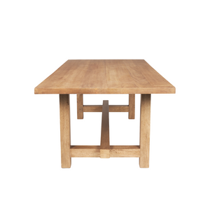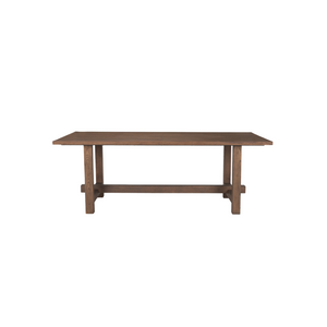 The "Suke" is a substantial trestle-style dining table. Its natural finish and smooth texture accentuate the mesmerizing intricacies and grain of the mango wood, making its innate beauty the focal point. With its spacious design and understated finish, the Suke Dining Table seamlessly integrates into various decor styles while enhancing any dining space.
