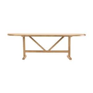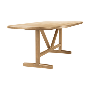 Inspired by the Scandinavian aesthetic of beauty, simplicity and functionality, the Viktor Dining Table epitomizes the definition of modern and relaxed design. Solid mango wood has been beautiful fashioned into an oval top and two T-shaped legs that have been reinforced by an appealing V-shaped design element that also adds durability and strength.