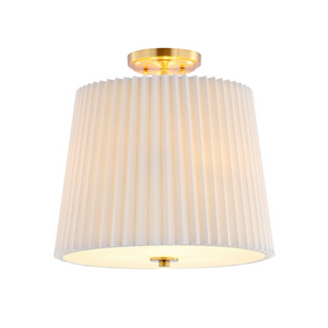 Nothing beats the classics, and this Madio Flush Mount proves that timeless designs are just as stylish as avant-garde ones. Madio’s pleated off-white fabric shade casts a warm glow in any room, while gold iron fittings add an elegant touch.