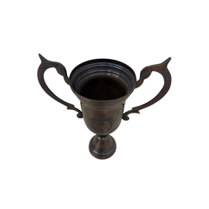 This antique found bronze trophy vase showcases a distinguished patina and elegant, timeless design, reflecting its history and craftsmanship. A striking decorative piece, it adds vintage sophistication to any display or collection.