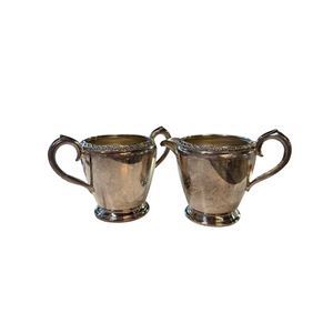These Wm. Rogers antique milk & sugar bowls dating back to the 1950's are the perfect piece to add to your kitchen and dining space. Made from silver, these are simple but unique pieces.