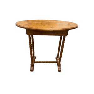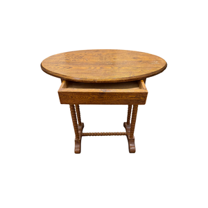 This antique oval side table features a warm, aged finish and a smoothly functioning drawer perfect for storing small essentials. Its beautifully carved wood legs showcase classic craftsmanship, adding subtle elegance and character. Timeless and versatile, it makes a charming accent piece for any room.