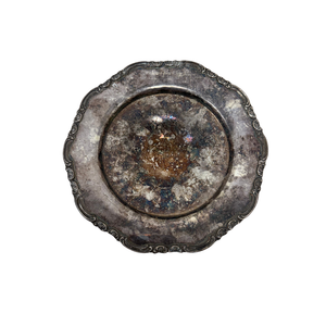 This antique silver dessert stand features elegant detailing and a polished patina that speaks to its timeless craftsmanship. Ideal for serving treats or as a striking decorative piece, it adds a touch of vintage sophistication to any table.