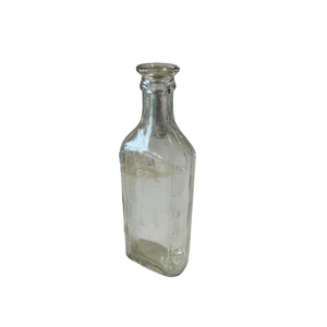 This glass vase has a variety of characteristics clung to the glass from over the years.