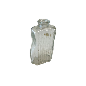 This glass vase has a variety of characteristics clung to the glass from over the years.