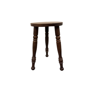This found wooden milking stool showcases simple, utilitarian craftsmanship with a warm, timeworn patina. Its sturdy form and rustic charm make it a versatile accent piece or functional perch in any space.