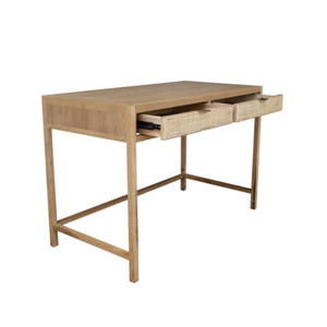 Natural and authentic materials give this stylish desk a rustic and down to earth vibe. It has a simple design that combines everyday utility with a bright and calming aesthetic.