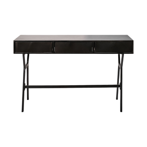 Exceptionally crafted from metal and finished in a matte-black tone, the Vince is a stylish writing desk that is guaranteed to set the right mood and bring out the creative side of you. It features a smooth matte-black polished tabletop and three drawers fitted with antiqued-gold toned pull handles that offer storage for supplies and stationery.