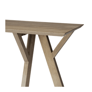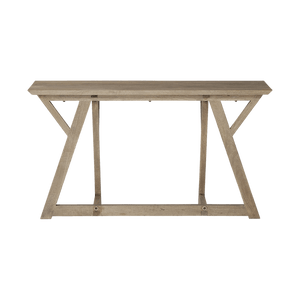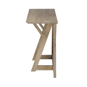 Meticulously crafted from durable Indian Mango wood, the Jennings is a nifty console table finished in a natural wood tone. It sports a smooth, rectangular, beveled-edge top, mounted atop a beautifully designed frame.