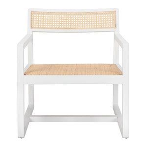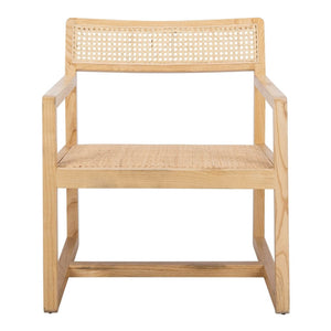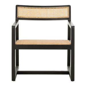 A modern marvel, this contemporary cane accent chair instantly updates any living room with fresh minimalist style. Its refined design features clean lines and chic angles, crafted with the beauty of fine, luxurious natural cane and black elm wood.