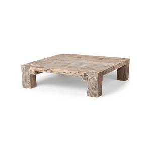 Featuring a clean and minimalistic design, the McArthur is an exquisite coffee table that is exceptionally crafted from reclaimed wood and finished in a whitewashed light brown polish that highlights the grain and variation in the wood used.