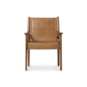 This classic sling chair has been reinvented with a modern, streamlined twist, showcasing a fresh and refined look. The back and seat are luxuriously crafted from high-quality top-grain buffalo leather, creating a stylish tonal contrast with its burnished wood frame. Its generous proportions and wide armrest provide maximum comfort and support, while the strong slingback ensures its shape will not deform over time.