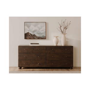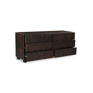 As if it tells a story woven through generations, the York 6-drawer dresser was born from a profound respect for heritage. With burl veneer and brass detailing, this collection celebrates the beauty and significance of heirlooms passed down through families--designed to be as timeless as the memories they will hold, with the hope that someday, future generations may cherish them.