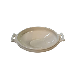 This elegant white ceramic covered serving dish from the 1950s exudes vintage charm with its classic design and timeless appeal. Featuring a smooth, glossy finish and a fitted lid, it’s perfect for serving warm dishes while keeping them covered.