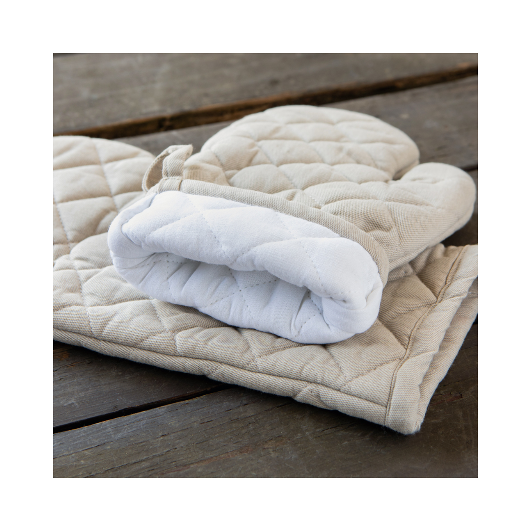 Prewashed and soft, these oven mitts give solid heat protection. A hanging loop makes storage easy, and these mitts will soften with each wash.