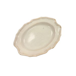 Imported from France, this antique found white ceramic serving dish showcases a beautifully aged patina and subtle imperfections that tell its story. Once utilitarian, it now serves as a striking decorative piece, adding vintage charm and character to any display.