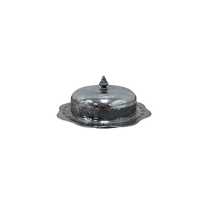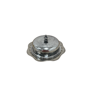 This Found Silver Plated Dome Butter Dish features a classic domed lid with a polished finish that adds elegance to any table setting. Its timeless design makes it perfect for serving butter while enhancing both everyday meals and special occasions.
