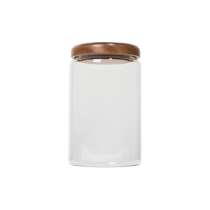 This glass jar with acacia wood lid offers an elegant food storage solution. Made of food-safe materials, this jar is stylishly suitable for use in and out of the kitchen. Features a wide mouth and silicone rubber seal to preserve freshness.