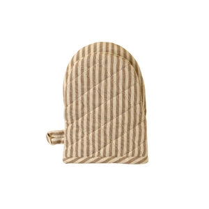 Elevate your kitchen essentials with the Hampton Stripe Oven Mitt. Made in India from 100% cotton, this oven mitt features timeless stripes and a modern European silhouette that fits comfortably on any hand. The soft yet durable fabric and handcrafted loop make it as practical as it is beautiful. It's perfect for the well-dressed kitchen.